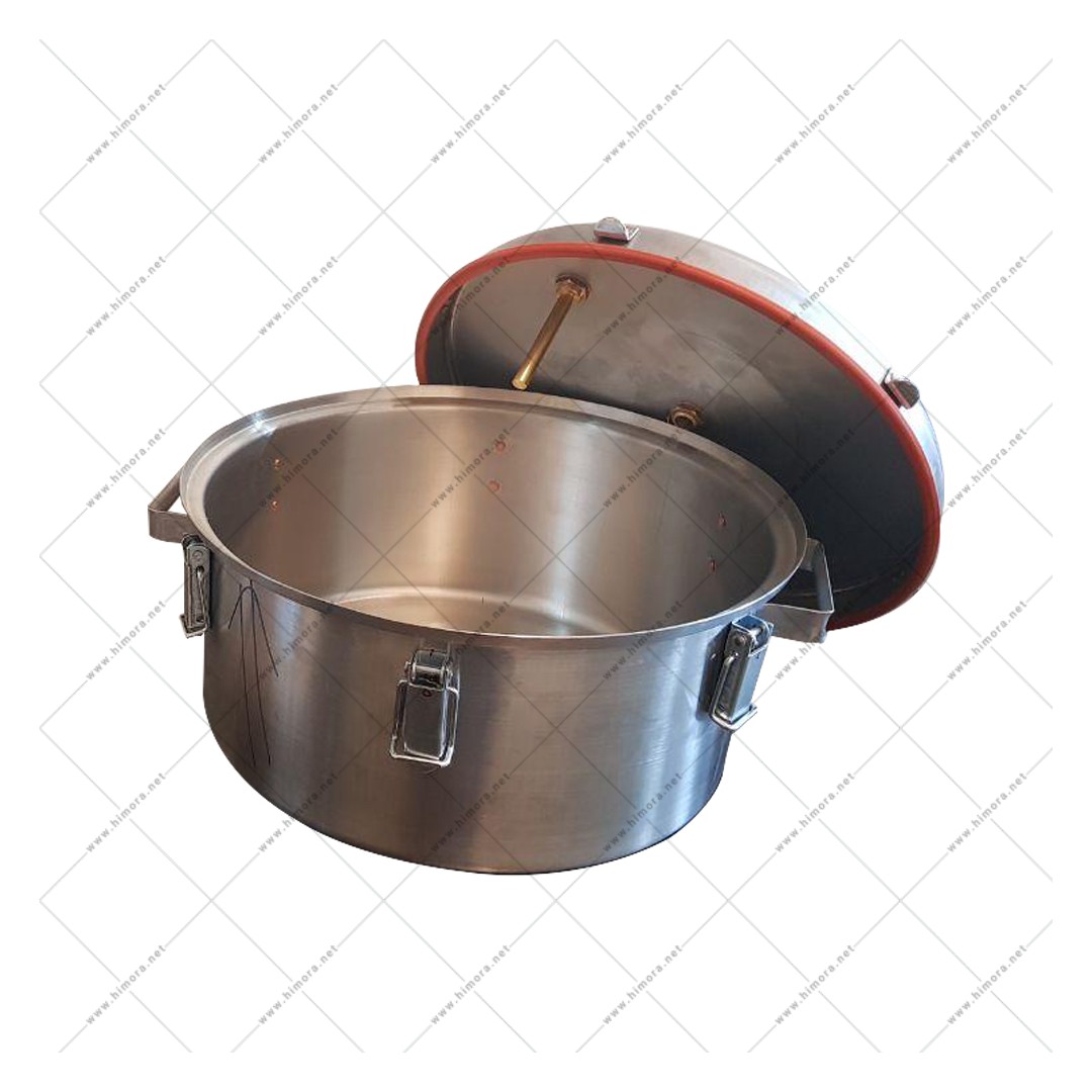 برای گرفتن عرق از گیاهان به روش تقطیر عمل می کنند که مرحله اول آن حرارت دهی به مخلوط گیاه و آب است؛ این عمل در داخل دیگ پخت انجام می گیرد. دیگ این مدل از عرق گیرها جنسی از استیل مرغوب 304 داشته و نسبت به دماهای بالا کاملا مقاوم است. بدنه دیگ نسبت به رطوبت، ضربه، خش و خوردگی استحکام خوبی دارد. و دچار خوردگی و زنگ زدگی نخواهد شد و بر کیفیت محصول شما تاثیر نخواهد گذاشت. همچنین شرکت برای جابجایی راحت دیگ آن را مجهز به دو عدد دستگیره نموده است.