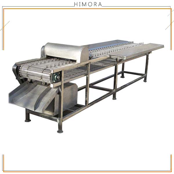 دستگاه پنجه زن پای مرغ بوسیله ی یک نوار نقاله با خراشهای ويژه در یک سمت ساخته و به تولید رسیده اند. در واقع پای مرغ که مورد پوست کنی قرار گرفته بعد از جداسازی و تخلیه، پاهای صدمه دیده بر روی سینی که در راستای نوار است پراکنده می شود. بعد از آن مشتریان از روی سینی پای مرغ کامل را برمی دارند و در مکان خراش های نوار می نهند تا بوسیله ی تیغه های فولادی بریده شوند و تبدیل به دو تکه ساق و پنجه گردند، در نهایت هر کدام از این دو به کمک شوت مرتبط از یکدیگر جدا می شوند. در واقع پنجه به دست آمده بوسیله ی نوار نقاله به درون فینیشر راهنمایی می گردد و ساق نیز برای جابجایی به بخش اضافات، درون سبد پراکنده می شود.